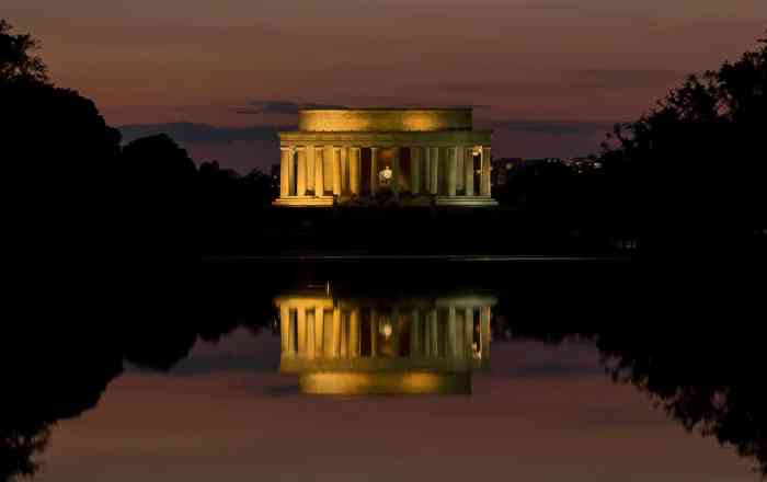 A night photo of the Lincoln Memorial in Washington, DC